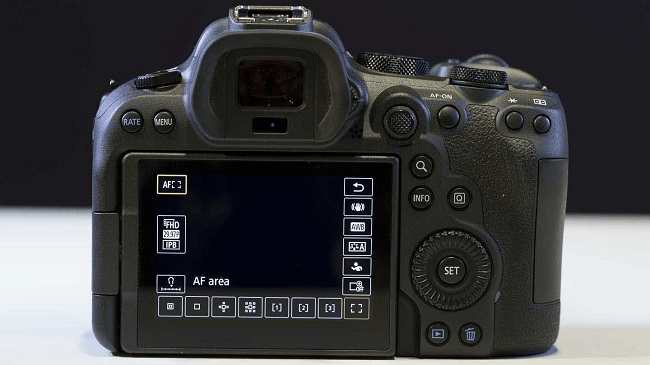 - EVF và LCD: Kính ngắm điện tử (EVF) không thay đổi, vẫn là màn hình OLED 0.5 inch, 3.69 triệu điểm ảnh, độ phóng đại 0.76x, tốc độ làm mới 120Hz mượt mà. Màn hình LCD phía sau cũng tương tự R6: loại cảm ứng xoay lật linh hoạt 3.0 inch, 1.62 triệu điểm ảnh với lớp phủ Clear View LCD II.