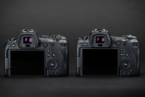 Đối với cả hai máy ảnh, thiết kế sẽ cho cảm giác quen thuộc nhưng R5 nặng hơn và góc cạnh hơn một chút so với R6.